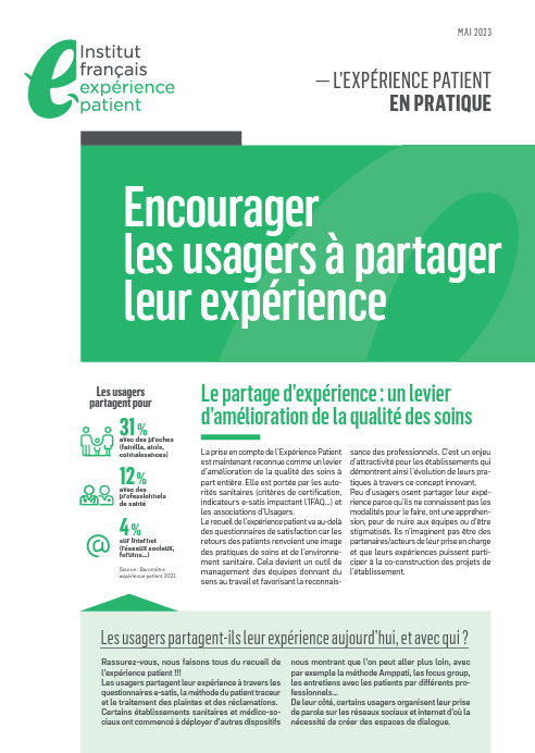 Peu d’usagers osent partager leur expérience parce qu’ils ne connaissent pas les modalités pour le faire, ont une appréhension, peur de nuire aux équipes ou d’être stigmatisés. Ils n’imaginent pas être des partenaires/acteurs de leur prise en charge et que leurs expériences puissent participer à la co-construction des projets de l’établissement.